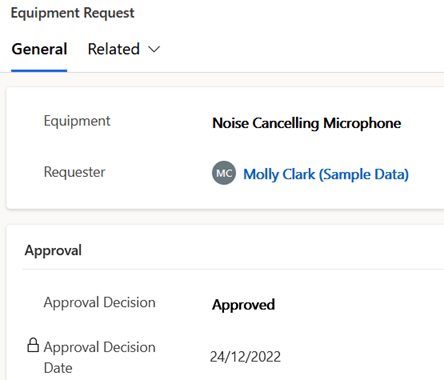 This screenshot shows the field having been auto-populated for this example after entering and saving an approval decision