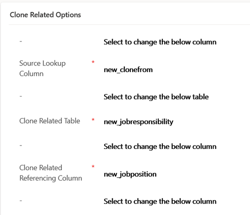 new_clonedfrom is a self-referencing lookup column in the jon decription table, and the other details specify to clone related job descriptions which are linked by the given lookup column