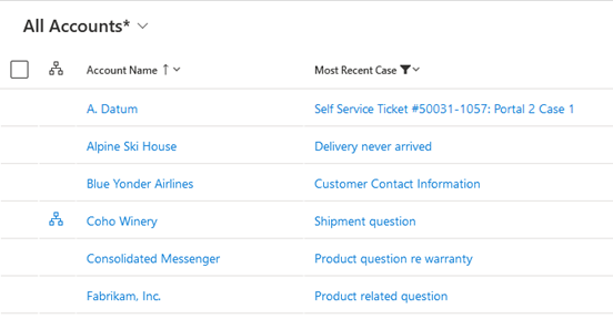 This screenshot shows the example rollup column displaying in list view after populating into sample data