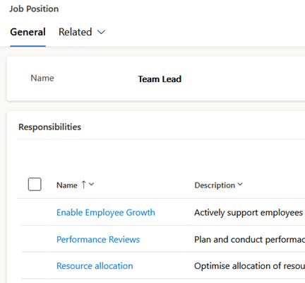 To demonstrate the example here we have a job position with 3 responsibilities