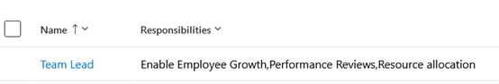 The responsibilities column can be seen here populated with the responsibility list