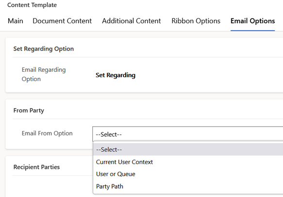 - Current User Context – the user creating the email will be set as the from party