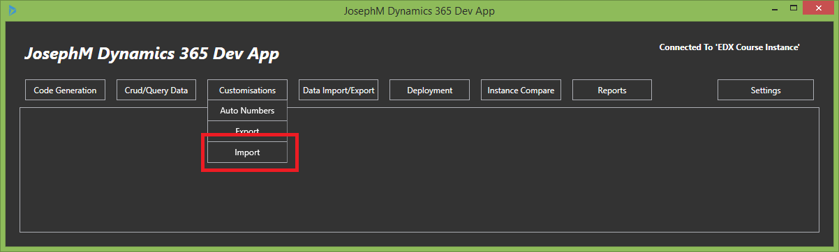 Customiation Import Menu