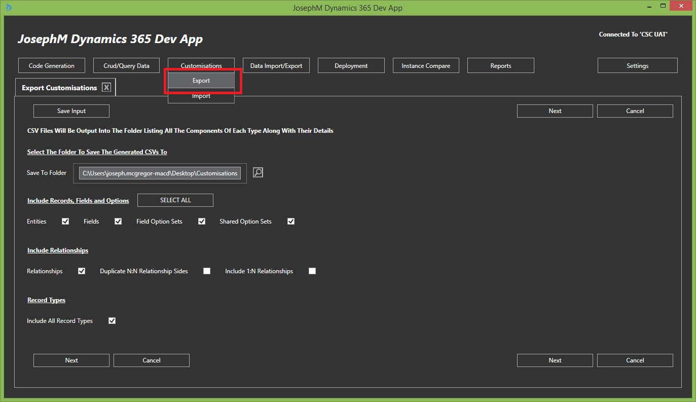 Customisation Export Entry