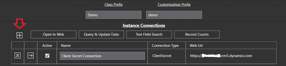 To add a new connection, click the + button at the top left of the Instance Connections grid