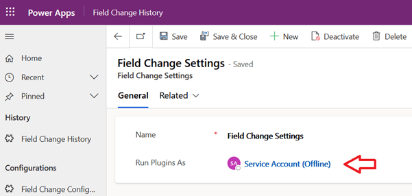 - In the Field Change Settings record set the field named Run Plugins As to the relevant service account.