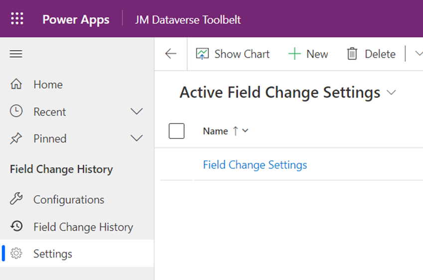 - If there is an existing Field Change Settings record open it, otherwise click to create a new Field Change Settings record. Note there should only be one Field Change Settings record created for the Dataverse instance. This record is required for Field Change Configuration plugins to capture Field Change Events.