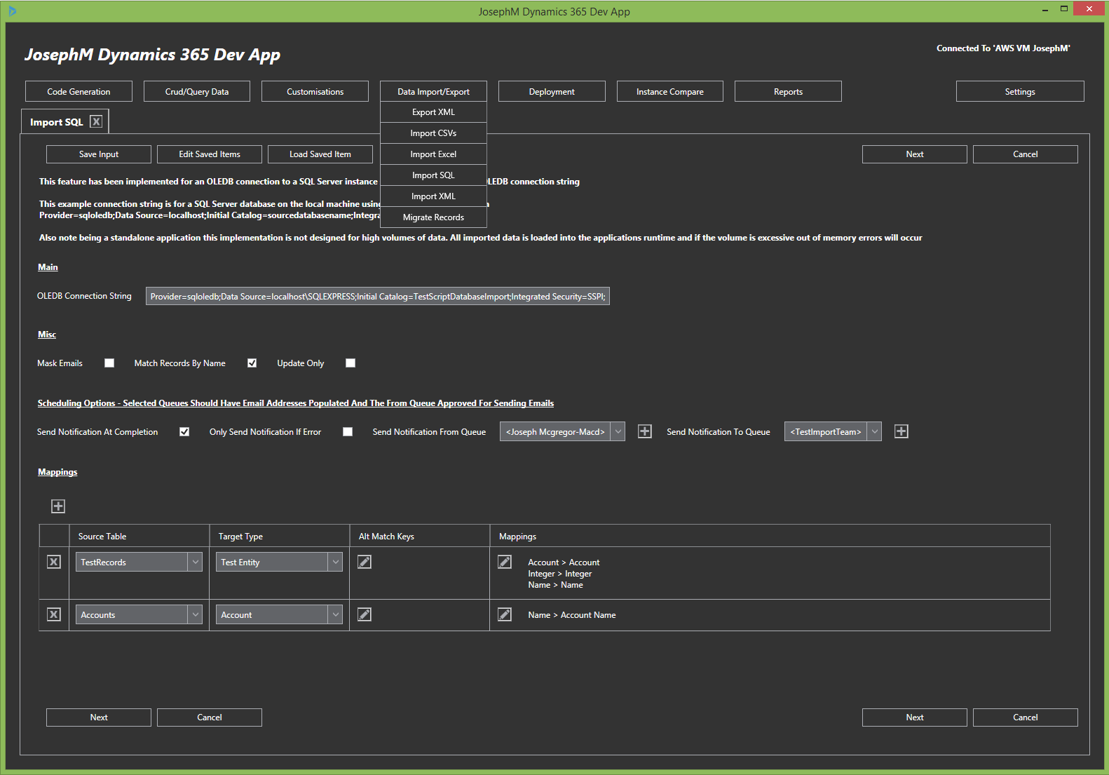 SQL Import Request