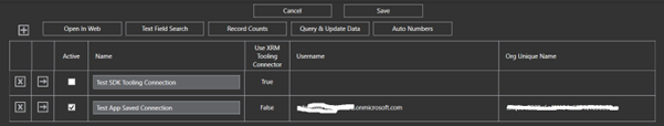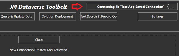 The Dataverse Toolbelt allows multiple instance connections to be saved in the app. Once created these connections can be made ‘active’ by clicking the connection button at the top right of the app
