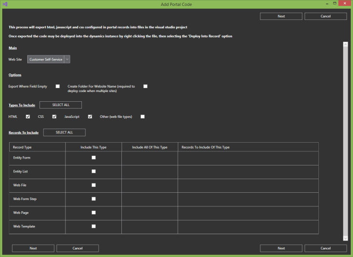 VSIX Add Portal Code Entry